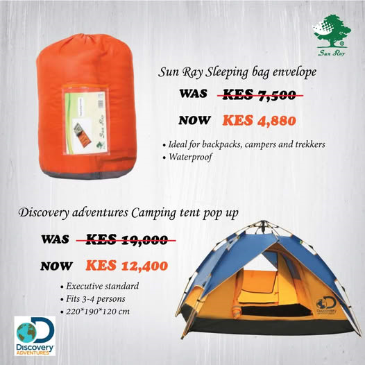 Only at Nairobi Sports House — save big on quality camping gear built for comfort, adventure, and durability.